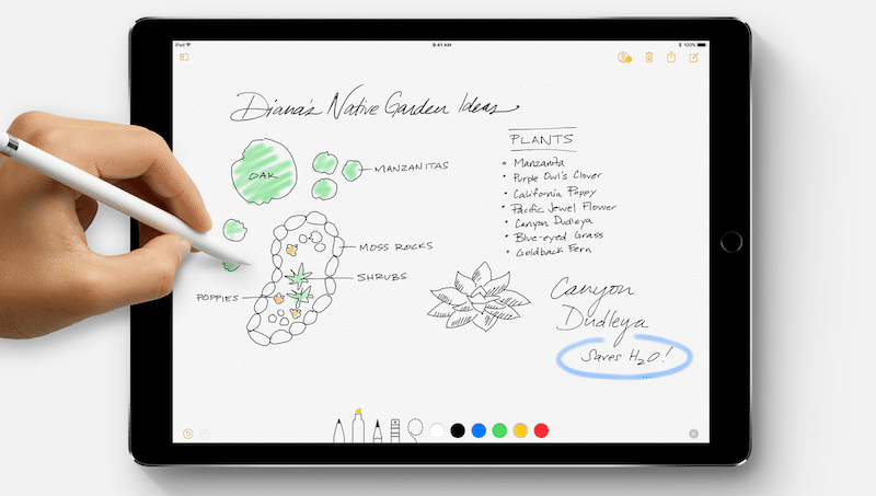 Приложение «Заметки» получит встроенный сканер документов. Для того, чтобы им воспользоваться, нужно нажать кнопку с изображением знака + и выбрать опцию сканирования. Удерживайте документ напротив камеры iPad, и он будет подсвечиваться на экране. После обрезки и осветления документ будет импортирован. После этого можно будет добавить поверх запись с помощью Apple Pencil.