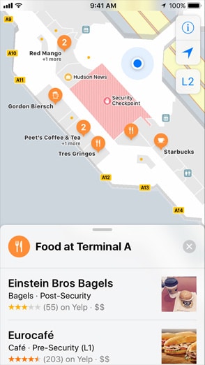 Apple Maps тоже затронуты обновлением. Теперь они отображают план помещения для более сотни торговых центров по всему миру. Улучшен и встроенный навигатор.