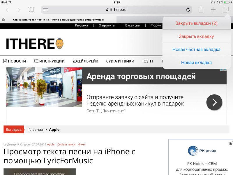 При долгом нажатии на переключателе закладок в Safari появляются новые опции: можно открыть новую приватную вкладку и закрыть текущую.
