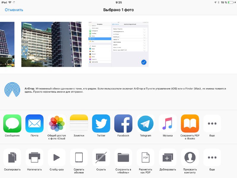 Выбираем файл и жмем «Поделиться» для выбора новой опции. Данная опция заменяет «Добавить в iCloud Drive».