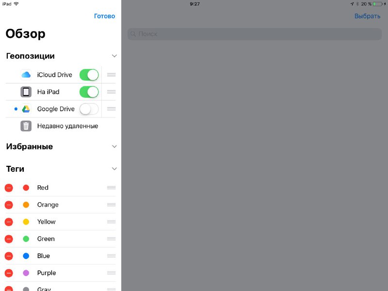 В бета 1, активной была опция «iCloud Drive» в качестве места хранения файлов. Теперь, появились дополнительные опции: «OneDrive» и «Box». Но само по себе это не нововведение, это просто реализация старой функции «Document Picker» в новом приложении «Файлы».