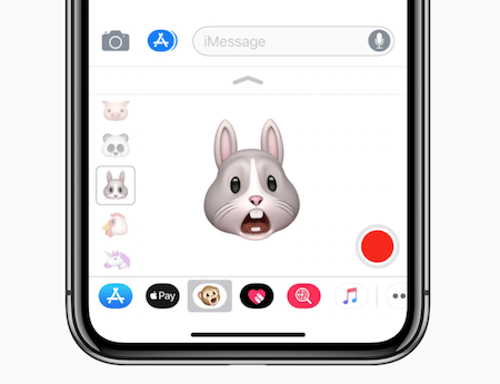 Видео с Animoji можно записывать только в Сообщениях. Зайдите в любой диалог и выберите на панели снизу значок Animoiji. После этого выберите персонажа. Не переключайтесь на полномасштабную версию приложения, иначе редактировать видео будет сложнее.