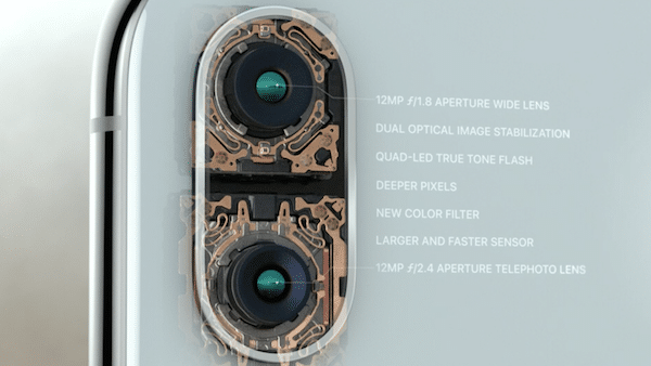 Система из двух камер на iPhone X немного лучше, чем на iPhone 8. Две 12Пм камеры (диафрагмы f 1.8 и 2.4) поддерживают оптическую стабилизацию изображения. Теперь видео с увеличением в плохо освещённых условиях будут выглядеть намного лучше (шумоподавление также было улучшено).