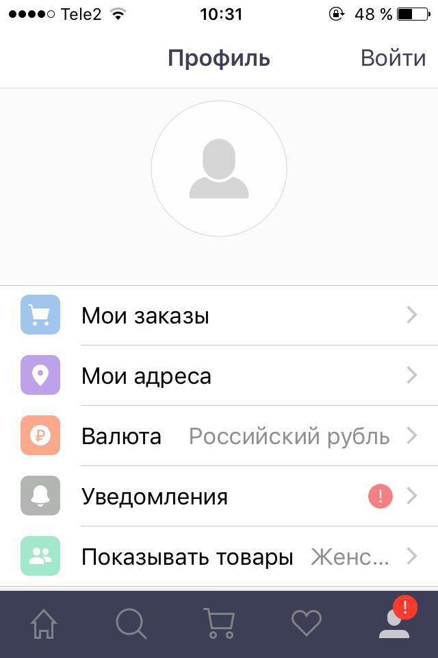Заданная категория будет отображаться автоматически при последующих запусках. Если потребуется изменить выбор, это в любой момент можно будет сделать в настройках аккаунта. Для перехода к ним нужно нажать на иконку профиля, расположенную в нижнем правом углу экрана, и изменить настройки опции «Показывать товары»: