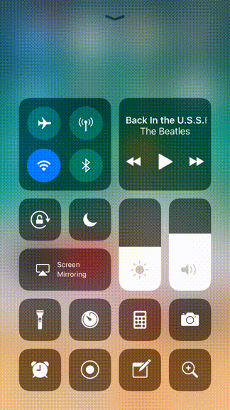 Две верхних секции — индикаторы и управление проигрыванием — теперь могут раскрыты при помощи удержания или 3D Touch. Внутри них находятся, соответственно, кнопки для управления мобильной сетью и режимом модема и дополнительная информация о композиции наряду с громкостью и прочими сведениями.