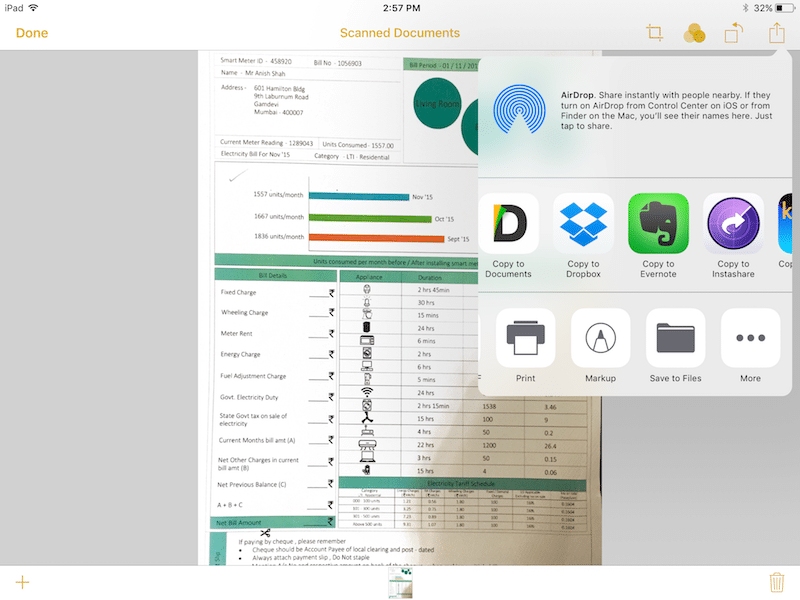 Когда документ будет просканирован, вы сможете продолжить сканировать другие. Когда вы закончите, документ появится в заметке в виде превью. Вы можете перенести его в Dropbox, или он будет экспортирован в формат PDF.
