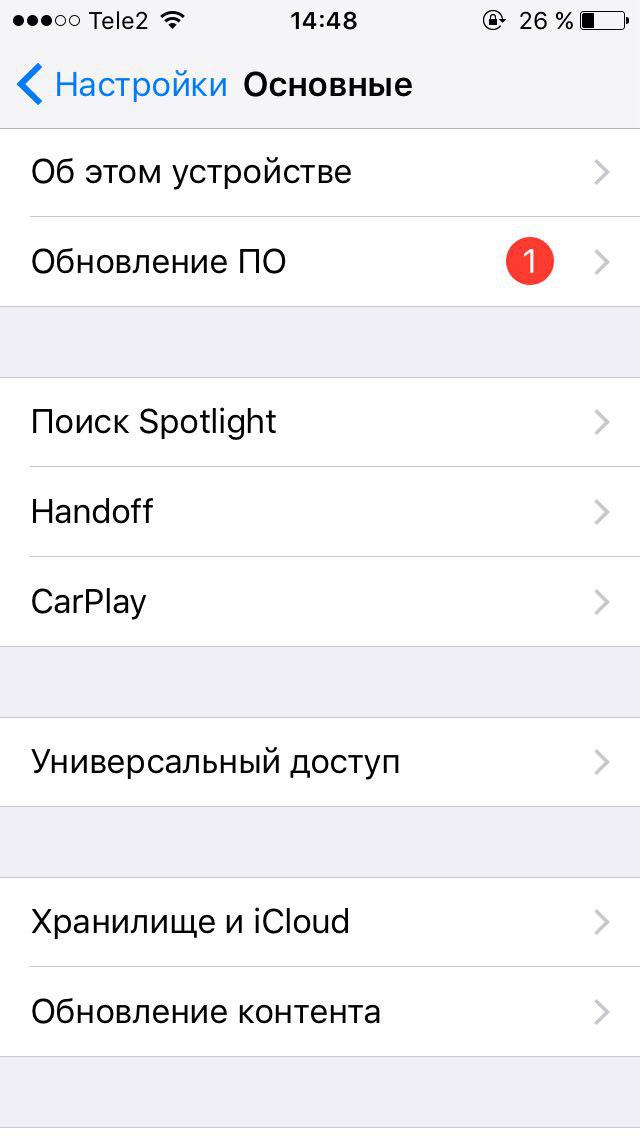 - Перейдите в раздел «Основные» => «Обновление ПО».