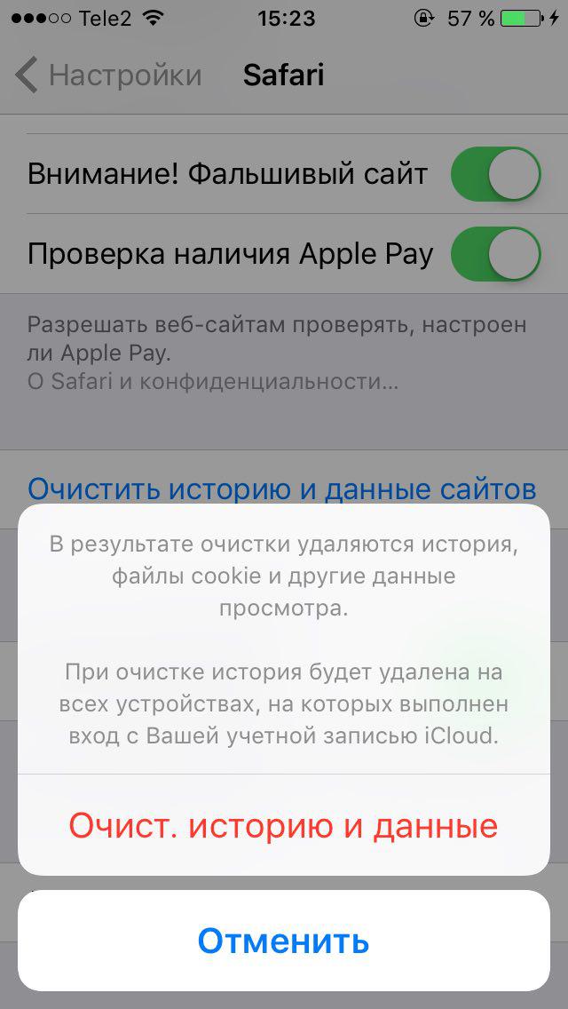 Универсальной возможности очистки кэша не существует – приходится удалять данные отдельно в настройках конкретных приложений. Например, для очистки кэша Safari вам нужно посетить раздел «Настройки» => Safari и активировать опцию «Очистить историю и данные сайтов».