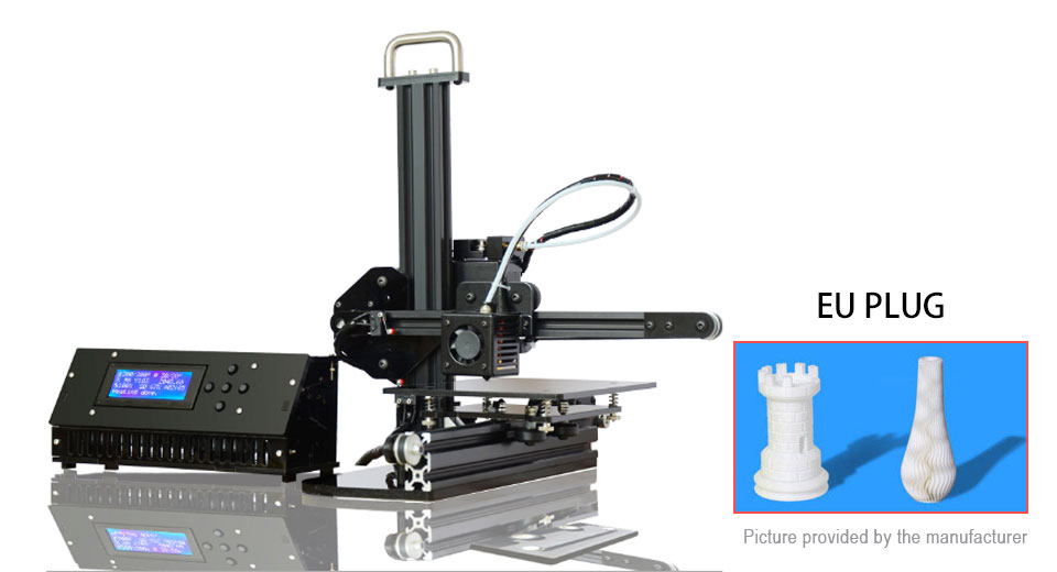 Это недорогой китайский 3D-принтер, поставляется в разобранном виде, так что пользователю сначала придется собрать девайс самостоятельно. Рама выполнена из алюминия и достаточно прочная, чтобы принтер можно было перевозить даже в собранном виде.