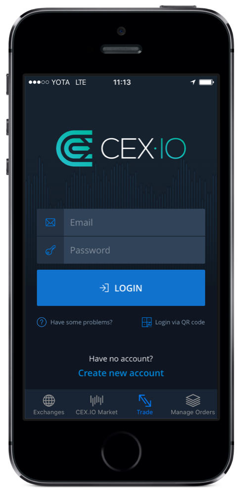 Зарегистрироваться можно по этой ссылке. Когда вы впервые откроете приложение CEX.IO, вам будет предложено ввести свой e-mail и пароль.