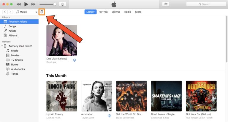 3) Подключите своё устройство с iOS к компьютеру с помощью USB-шнура и откройте iTunes.