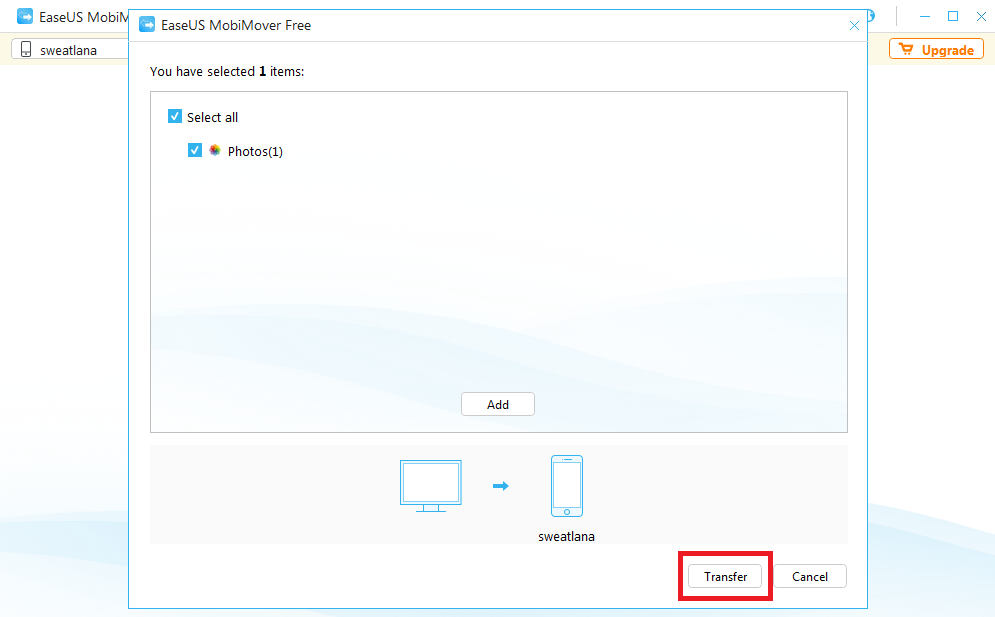 Шаг 4: Подтвердите перемещение файлов, нажав Transfer.