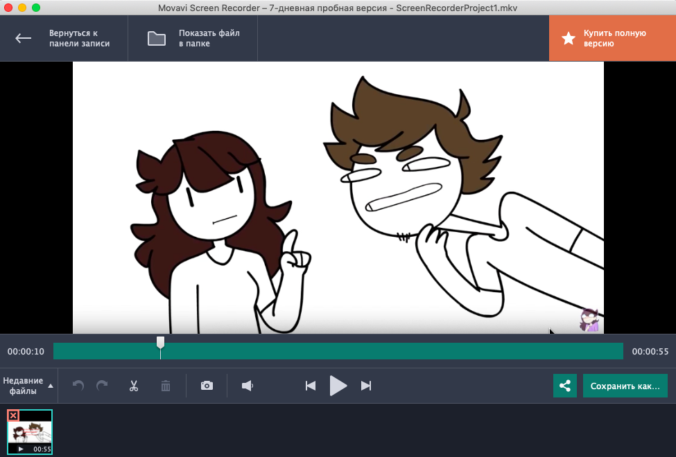 Movavi Screen Recorder показала себя максимально понятной и удобной утилитой для захвата видео с экрана и внешних источников. Процесс во многом напоминает процесс записи ТВ-передач на кассеты — только с возможностью сразу обрезать всё лишнее. Если на сайте нет возможности сохранить видео напрямую и вы не против потратить несколько минут на захват экрана, эта программа отлично справится с задачей.