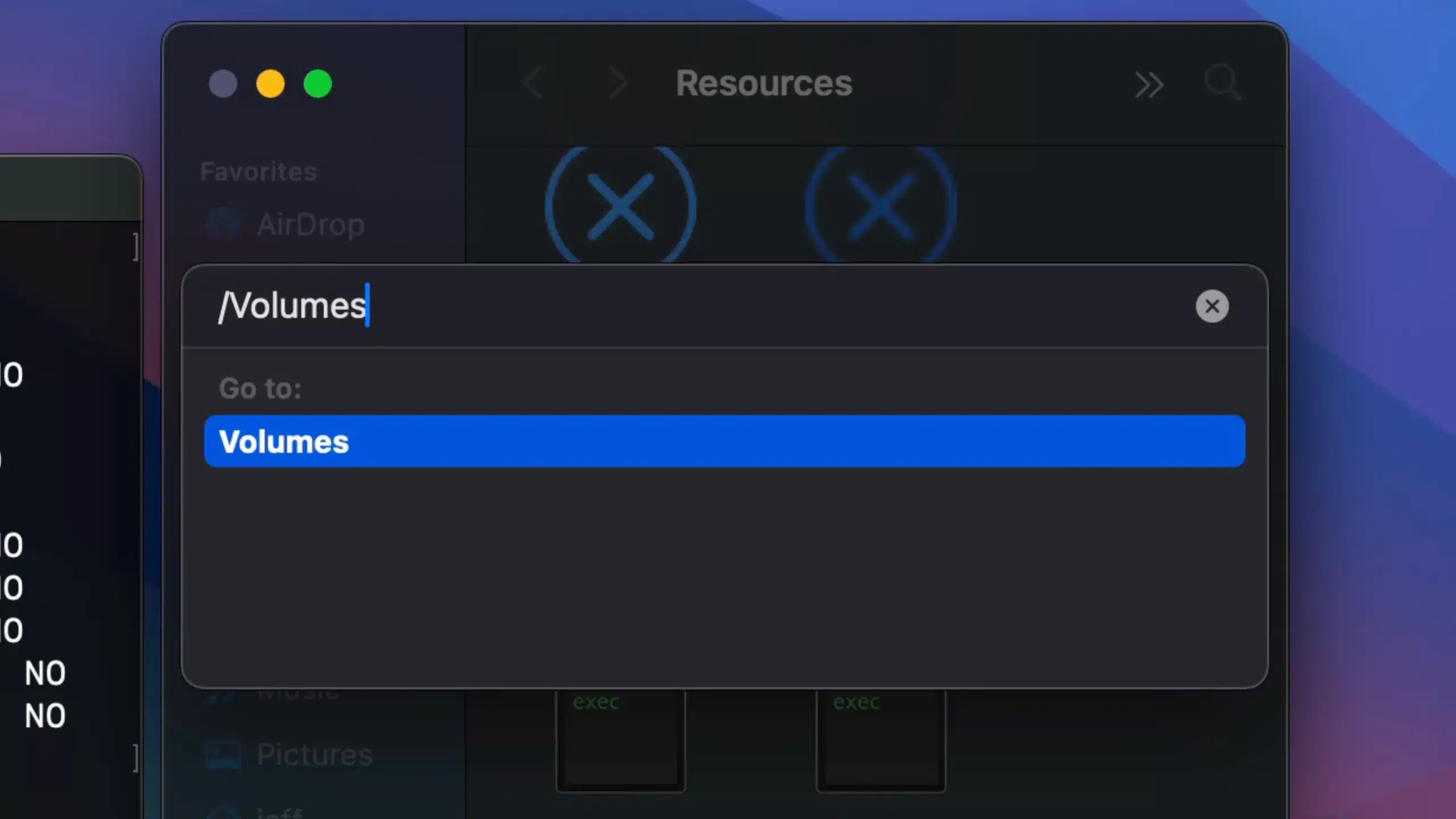 Шаг 9: Введите /Volumes и нажмите клавишу Enter на клавиатуре.