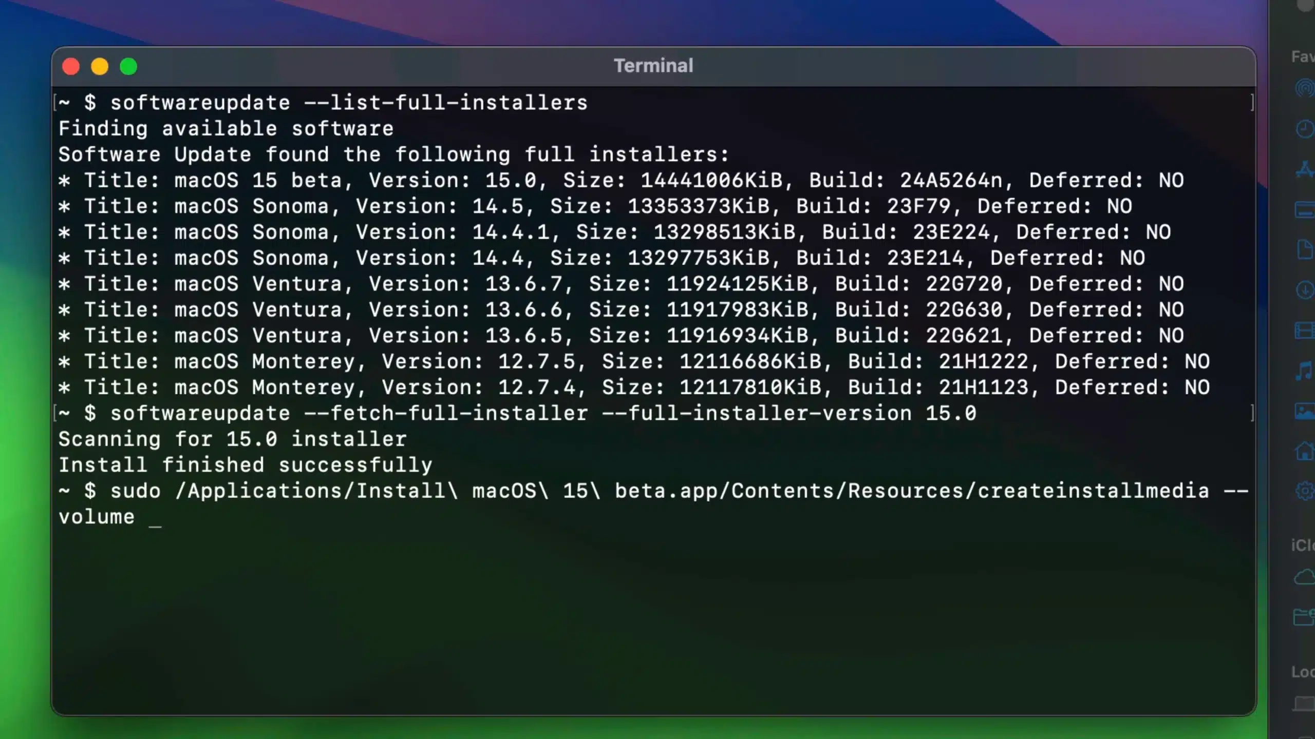 softwareupdate --fetch-full-installer --full-installer-version 15.0