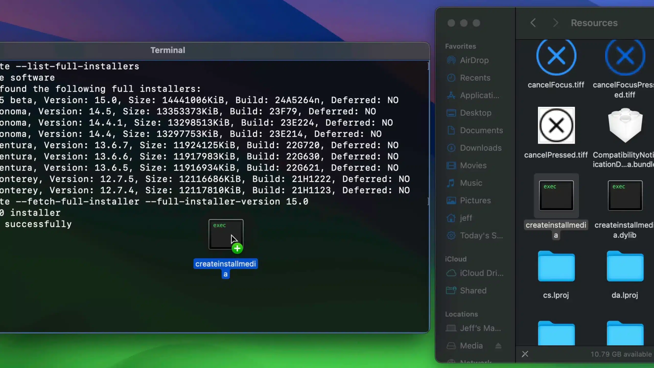 Шаг 5: Перетяните файл createinstallmedia из папки с ресурсами прямо в окно «Терминал».