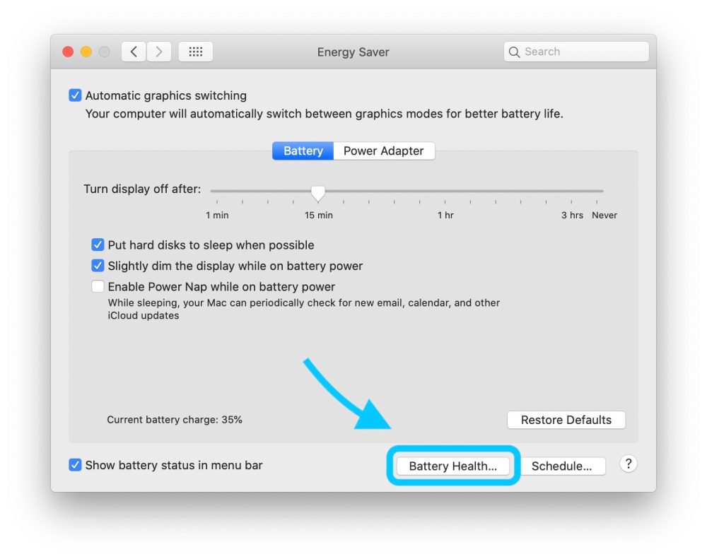 - Зайдите в Системные настройки > Экономия энергии.