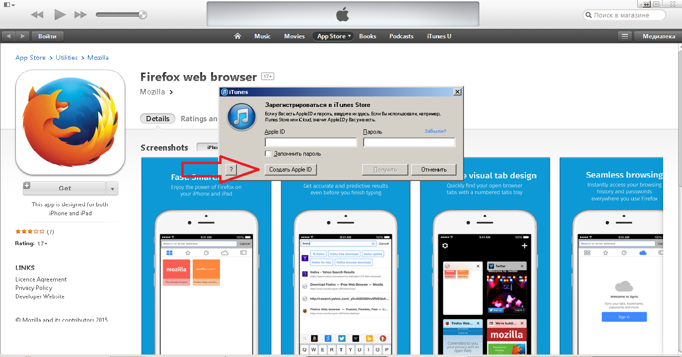- Теперь нажмите «Get» и вместо ввода своего идентификатор Apple, создайте новый.