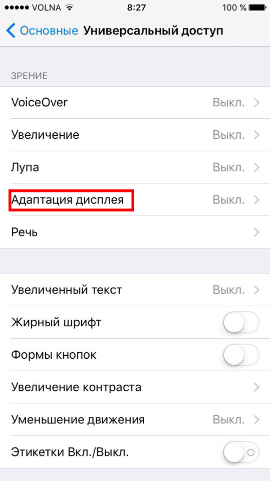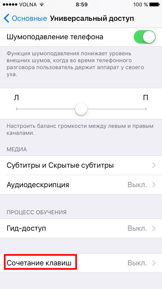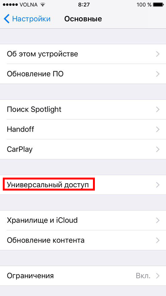 Шаг 1: В Настройках выберите Основные -> Универсальный доступ.