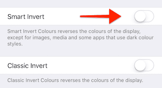 Шаг 4: На следующем экране включите Smart Invert.
