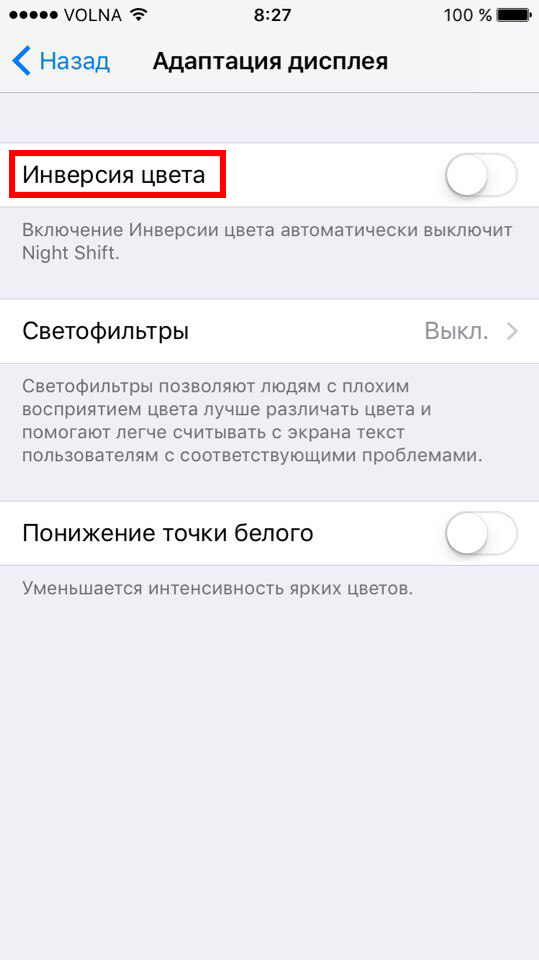 Теперь при тройном нажатии на кнопку «Home» сразу же включится функция Smart Invert.