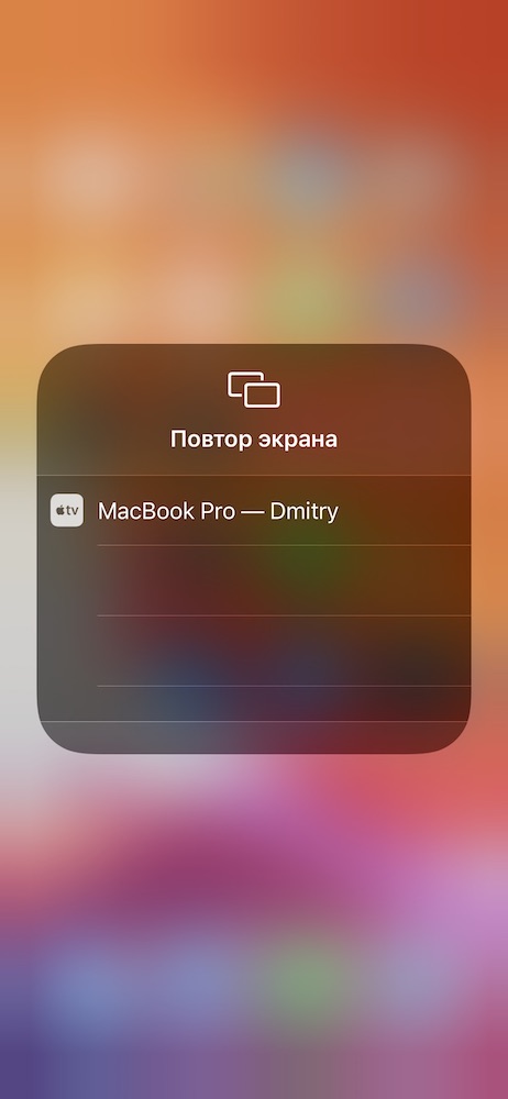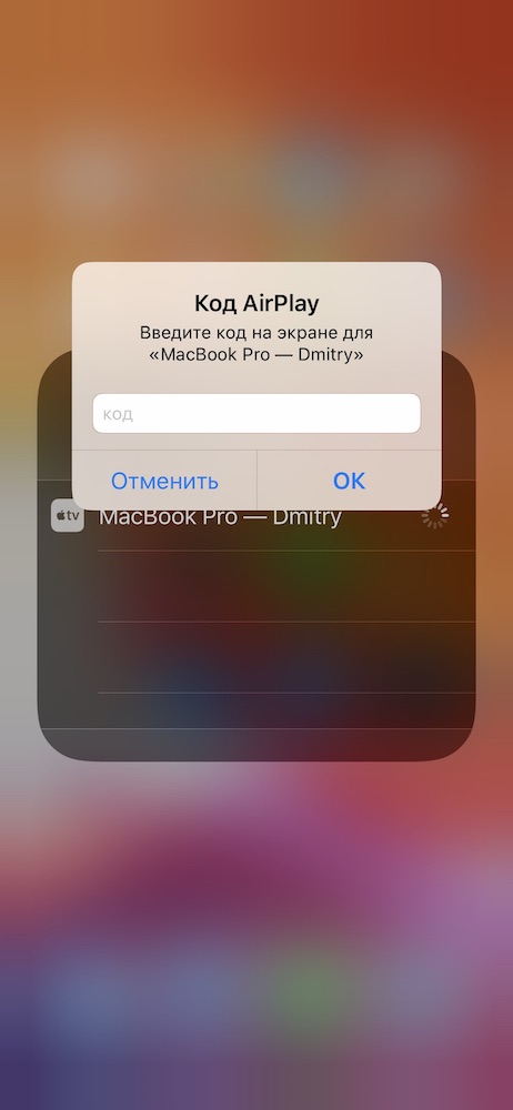 Шаг 3: Теперь включите AirPlay (Повтор экрана) на своём устройстве, для этого вызовите пункт управления потянув из правого верхнего угла, затем удержанием по иконке «Повтор экрана» выберите название своего компьютера и нажмите на него, чтобы начать трансляцию. На компьютере появится код, который нужно будет ввести на iPhone для подтверждения.