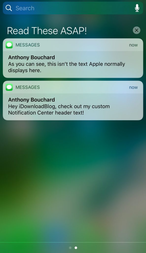 Твик добавляет отдельную секцию в Настройки, где можно ввести любой текст. Более того, можно настроить и другие опции центра уведомлений. Для применения изменений понадобится респринг.