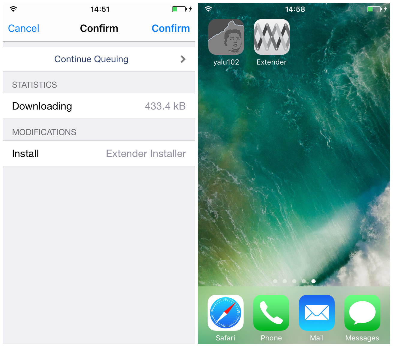 Примечание: Начиная с версии 0.3.2, приложение называется Extender: Reloaded, так что в Cydia теперь нужно вводить это название, а не Extender Installer.