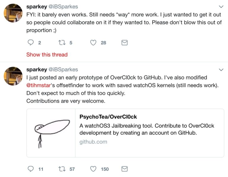 Пока что об инструменте OverCl0ck мало что известно, но он поддерживает watchOS 3 и основан на эксплойте хакера Seguza.