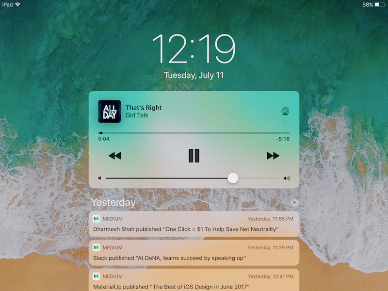 Конечно, не всё идеально. Вам всё ещё нужно провести по экрану вверх, чтобы открыть уведомления с экрана блокировки, но здесь не будут показаны варианты, если вы смахнёте уведомление вправо. Возможно, это исправят в Beta 5?