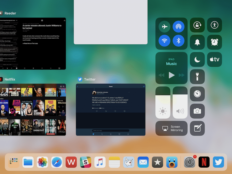 Новый переключатель между приложениями на iPad вернул поддержку смахивания приложений для их закрытия. Это работает и для одиночных приложений, и для Split View. Раньше нужно было зажать приложение, чтобы появилась кнопка «закрыть», и это было слишком сложно. Намного легче смахнуть приложение вверх, и мы привыкли к такому способу в нескольких предыдущих версиях iOS.