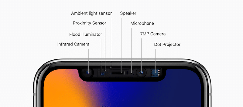 На новой модели нет Touch ID, зато появилась новая технология Face ID. Она работает на основе камеры TrueDepth, потокового иллюминатора, инфракрасной камеры и точечного прожектора. Прожектор проецирует 30,000 невидимых точек на ваше лицо, затем система создаёт математическую модель вашего лица и проверяет, совпадает ли она с моделью, сохранённой в сопроцессоре Secure Enclave. Всё это происходит быстро и незаметно.