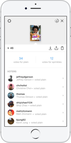 Совет: Чтобы проверить голоса, откройте историю и проведите по экрану вверх, чтобы открыть список просмотревших её. Там вы увидите и варианты, которые они выбрали.