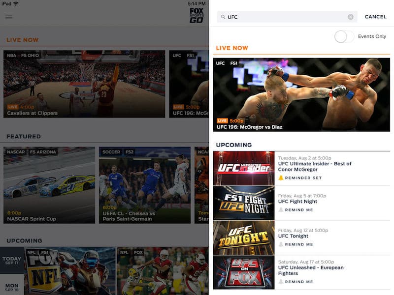 Приложение iOS доступно на английском и испанском, и им очень легко пользоваться. На Apple TV матчи можно смотреть через AirPlay.